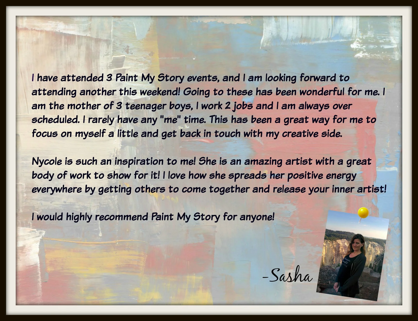 We need to keep in mind the process of creative self-discovery is the critical component that leads to unspoken truths for which we often have no voice. Through creativity we gain wisdom, insight of intuition and compassion. PYS invites us to sit with ourselves and savor the stories of our soul and let the stories guide us as we create. Paint*YOUR*Story is a personal response to the environment, connections & emotions that live within our soul.